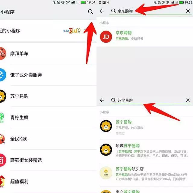 比如搜索“京东”却能找到【京东购物】的小程序;再比如,搜索“苏宁”、就会出苏宁易购!这边是不是很便捷呢!无需下载APP即可使用。小程序的了潜在力量无限想象!谁知道哪天突然又要用到某个应用,也就留在了手机上——尽管 16GB 的手机内存空间已不足……不占空间不碍眼~哈哈!这样又是16GB内存一个大福利!