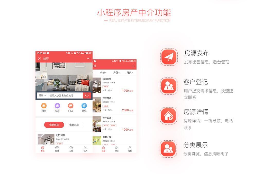 在线售房预约,房产租赁,实现全新的房产小程序服务平台支持房产发布信息